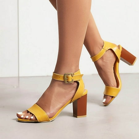 Pejock Summer Sandals Savings Clearance 2023! Women s Chunk Low Heel Pump Sandals Women s Roman Sandals Flat Head Open Toe Buckle Solid Color High Heels Sandals