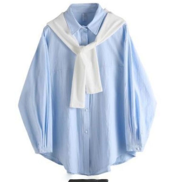 women's blouses & shirts cotton 100% fake 2 pieces women autumn design 2021 solid long-sleeved loose elegant office lady outwear, White