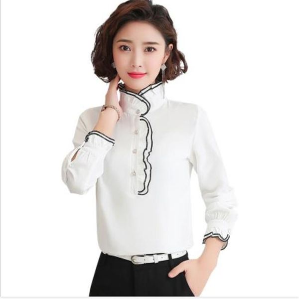 women's blouses & shirts elegant chiffon blouse women spring plus size 4xl shirt ruffled short2021fashion stand-collar female long sle, White