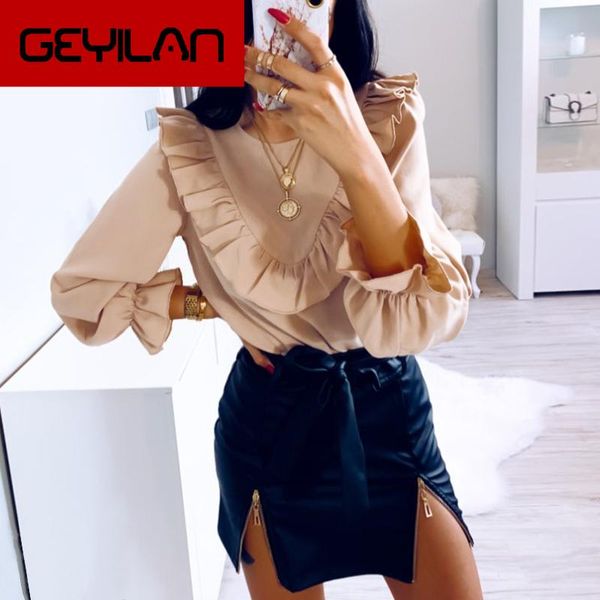 women's blouses & shirts elegant ruffled o-neck women blouse shirt autumn puff sleeve solid female casual streetwear ladies, White