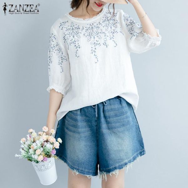 women's blouses & shirts embroidery summer blouse zanzea 2021 kaftan casual half sleeve female o neck blusas tunic chemise, White
