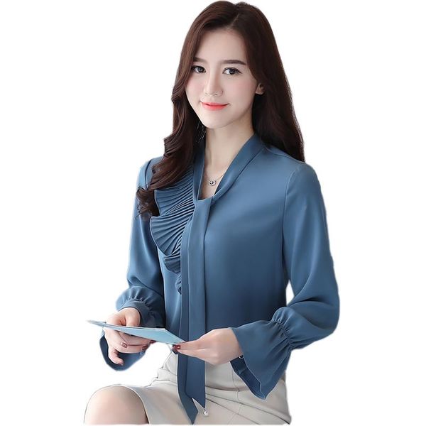 women's blouses & shirts fashion women blouse 2021 autumn chiffon bowknot long sleeve shirt flounced elegant pleated office lady, White