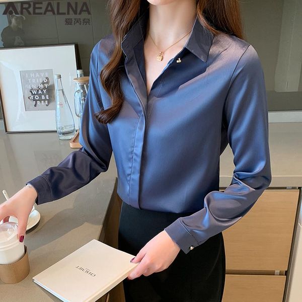 women's blouses & shirts korean fashion silk women 2021 autumn satin womens and plus size xxxl office lady long sleeve, White