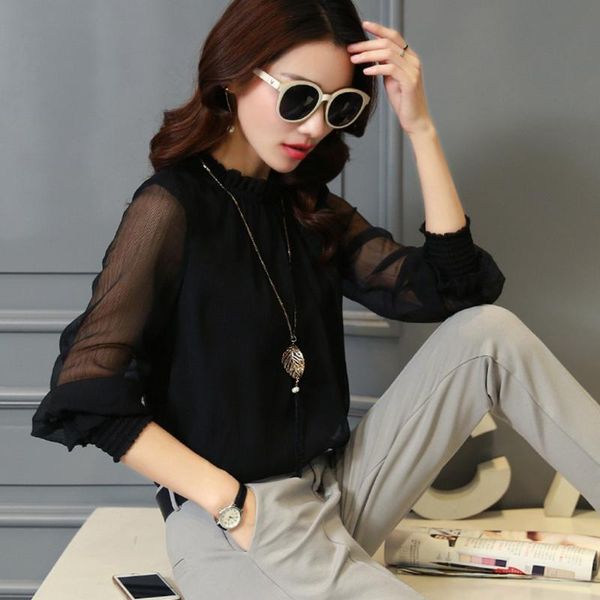 women's blouses & shirts leosoxs women chiffon blouse elegant lady stand neck work wear see trought long sleeve female shirt blusas, White