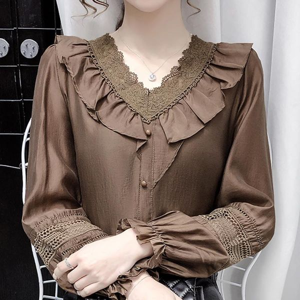 women's blouses & shirts long sleeve chiffon blouse shirt women blusas mujer de moda 2021 ruffles v-neck e342, White