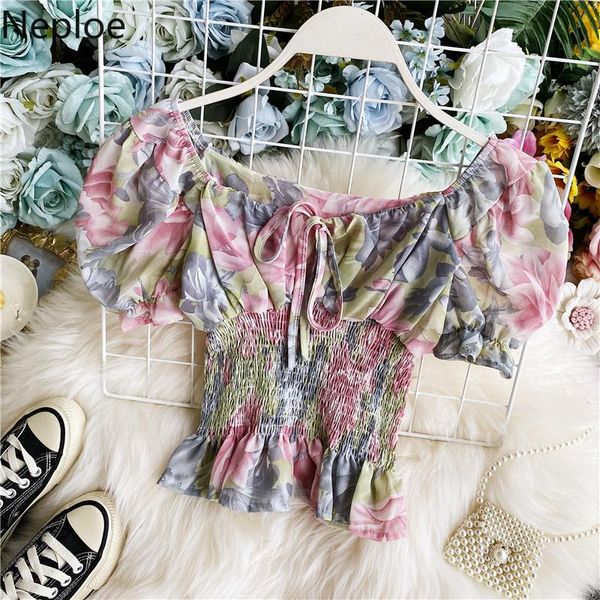 women's blouses & shirts neploe off shoulder strapless floral chiffon blouse 2021 summer women short sleeve stretch slim waist blusas, White