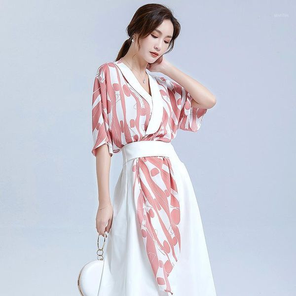 women's blouses & shirts printing irregular v-neck chiffon unlined upper garment to 5 minutes of sleeve without hitting scene play blou, White
