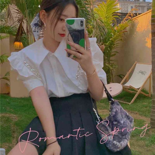 women's blouses & shirts puff sleeve korean fashion women ruffle button up short summer ladies blouse 3kfd, White