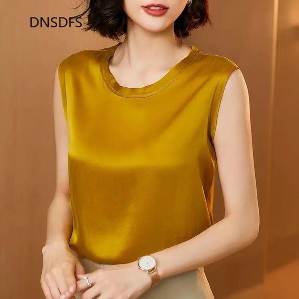 women's blouses & shirts satin women summer sleeveless shirt korean casual yellow blue office lady pullover chiffon blsuas mujer moda, White