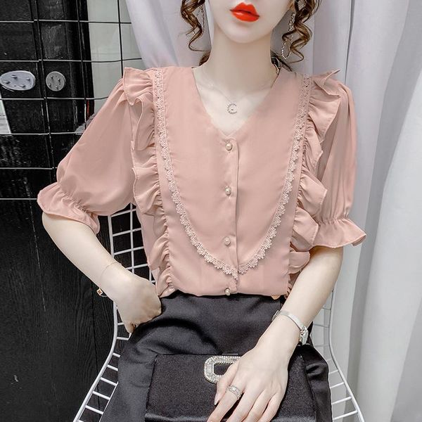women's blouses & shirts shirt summer 2021 design feeling ruffle v-neck foreign style small fashion versatile chiffon top, White