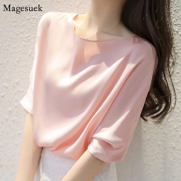 women's blouses & shirts silk short sleeve shirt summer 2021 o neck satin white blouse women casual fashion loose femlale clothing 153