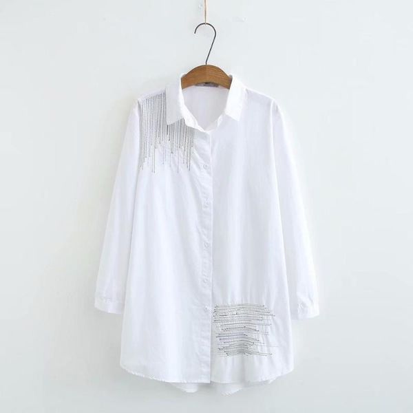 women's blouses & shirts solid white simple embroidery women loose plus size 2021 casual ladies spring autumn blouse female oversize
