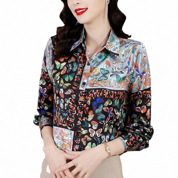 women's blouses & shirts women's blouses & shirts summer autumn long sleeve stitching printing satin casual fashion loose women sh, White