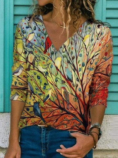women's blouses & shirts summer boho flower womens fashion shirt v-neck 3/4 sleeve print casual loose ladies floral blouse, White