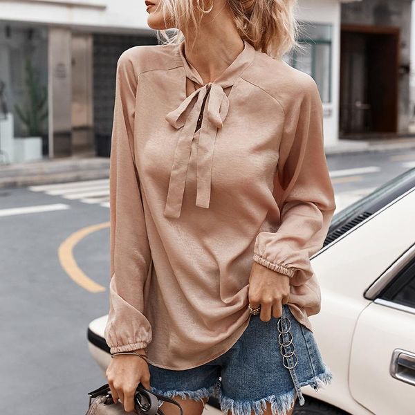 women's blouses & shirts vicabo solid color women casual bandage neck long sleeves office lady autumn clothing elegant female blouse, White