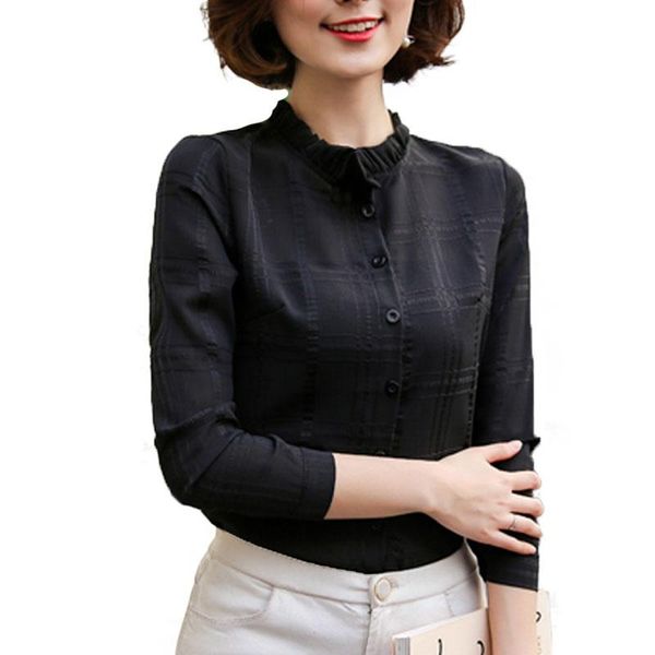 women's blouses & shirts volocean 2021 chiffon women blouse autumn winter solid shirt stand blusas kimono hem casual tee, White