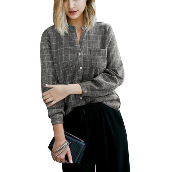 women's blouses & shirts woman blouse stylish long sleeve gray plaid print shirt fashion casual buttons for ladies pocket decoration du, White