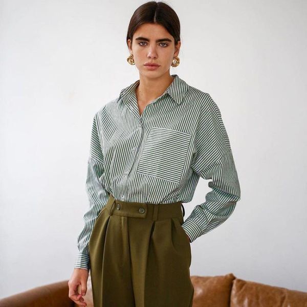 women's blouses & shirts women blouse 2021 elegant striped long sleeved shirt autumn and winter commuting casual loose bottoming, White