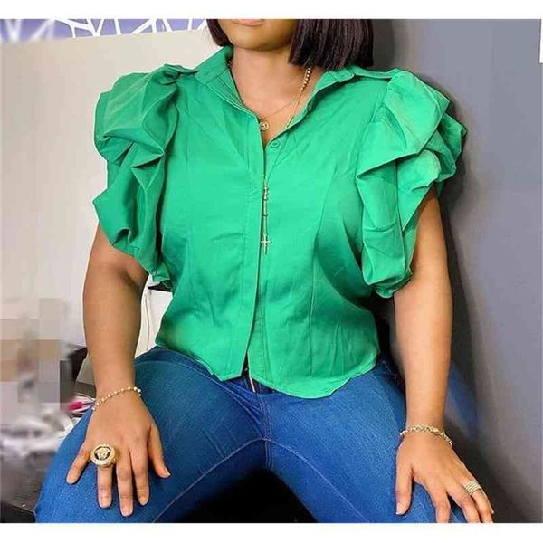 women's blouses & shirts women blouse shirt short puff sleeves turn down collar solid elegant office ladies classy female wor, White
