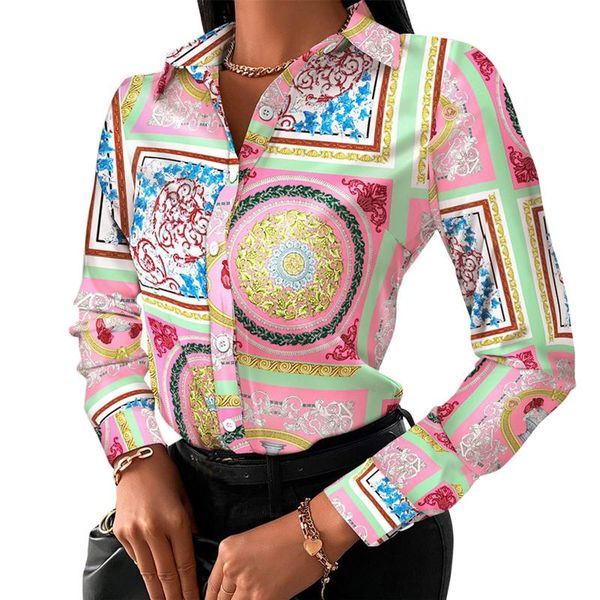 women's blouses & shirts women long sleeve tunic chain print button up blouse shirt chiffon fashion casual commuter top, White