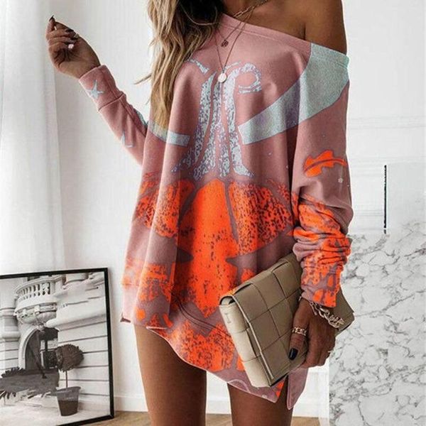 women's blouses & shirts women slash neck loose blouse shirt autumn long sleeve fashion printed ladies casual plus size pullover bl, White
