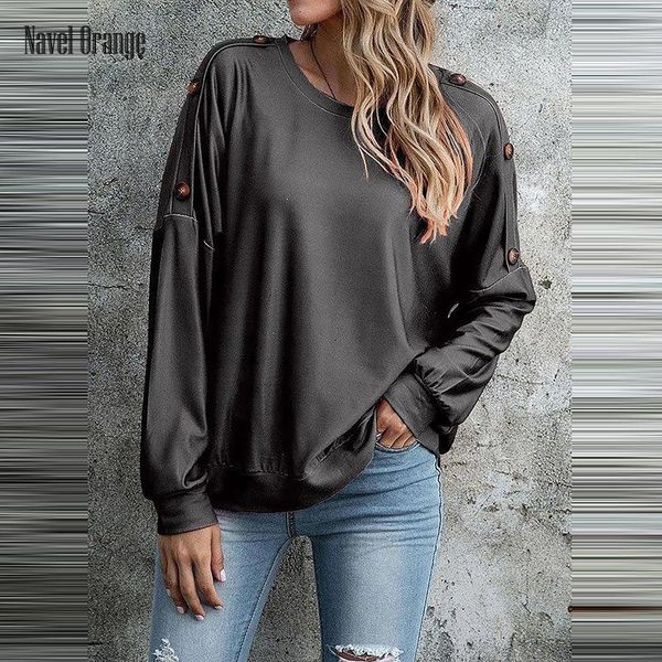 women's blouses & shirts women solid long sleeve loose pullover spring autumn o-neck button ladies blouse plus size 3xl streetwear swea, White