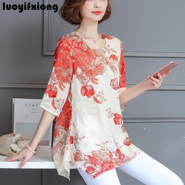 women's blouses & shirts women and summer casual half sleeve fashion floral print chiffon blouse plus size ladies shirt kimono -4xl, White