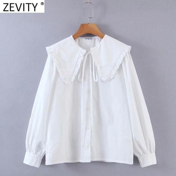 women's blouses & shirts zevity 2021 women simply agaric lace big turn down collar white smock blouse ladies sweet chic chemise blusas
