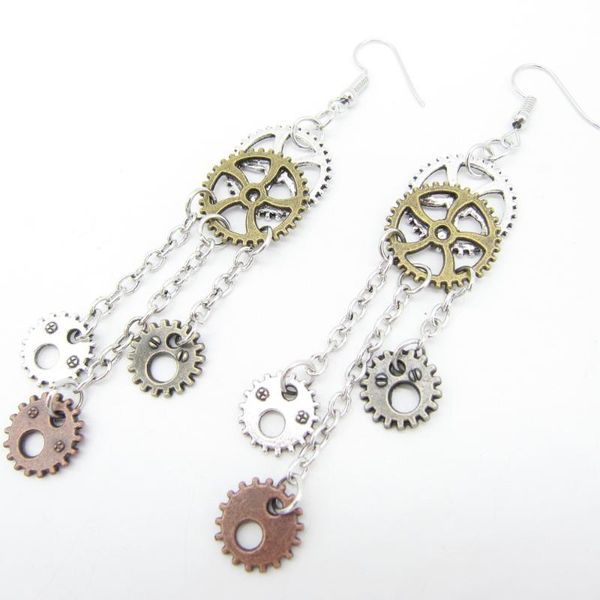 women's europe and the united states retro gear earrings steampunk diy manual dangle & chandelier, Silver