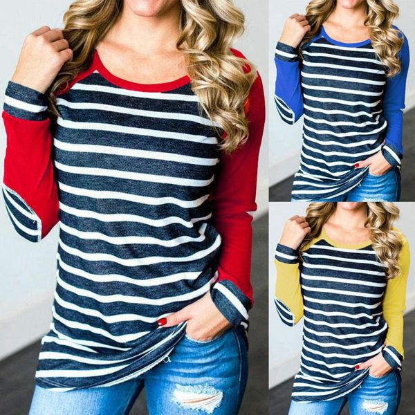 women's fall shirt, striped patchwork elastic party clothes round neck loose warm pullover t-shirt, White