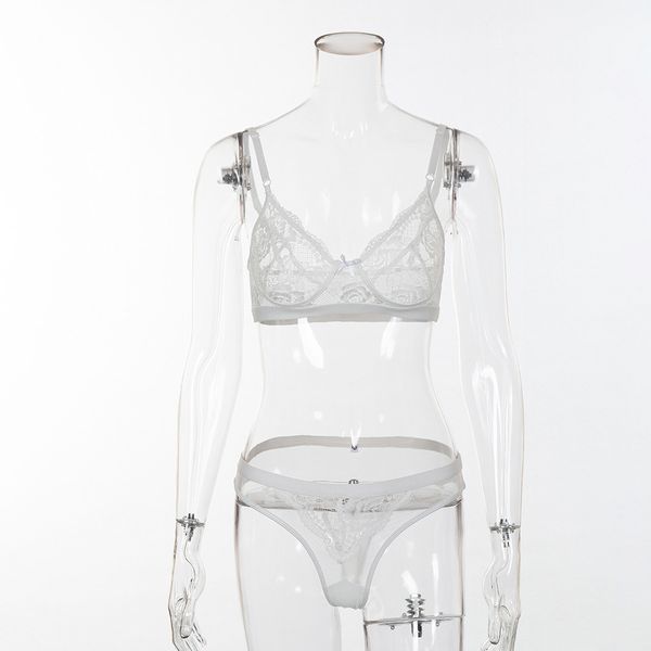 women's fine embroidery europe america 2019 small flowers lace stitching lingerie set, Black;white
