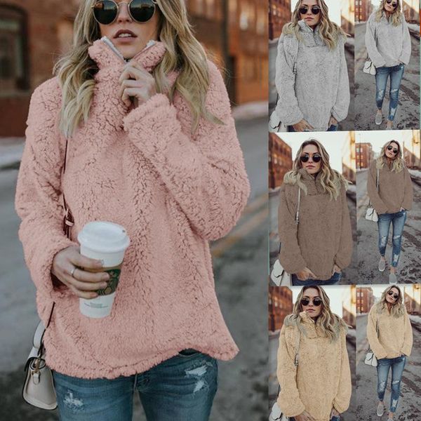 women's hoodies & sweatshirts 2021 autumn and winter zipper high collar sweatshirt warm pullover plush pocket hooded ladies comfortable, Black