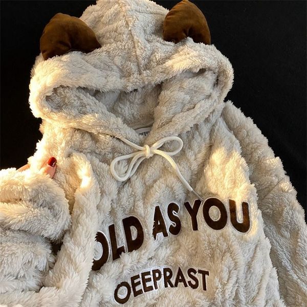 women's hoodies sweatshirts 2022 autumn and winter lamb velvet hoodie woman y2k sweatshirt women thick fashion casual jackets couple lo, Black