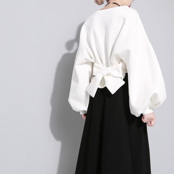 women's hoodies & sweatshirts bow tie lantern sleeve women sweatshirt harajuku streetwear oversized hoodie plus size hooded sweat femme, Black