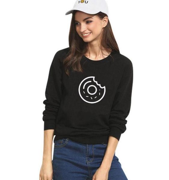 women's hoodies & sweatshirts cute fashion female tracksuit round neck donut printing autumn sweatshirt, Black