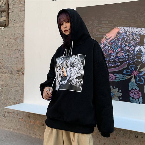 women's hoodies & sweatshirts harajuku street anime zombie print plus velvet winter hoodies loose sweatshirt sweater r8p6, Black