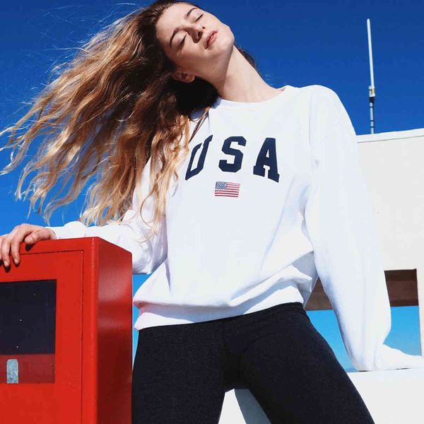 women's hoodies & sweatshirts white simple women letter print all-match long sleeve autumn sweatshirt fashion casual oversize axw8, Black