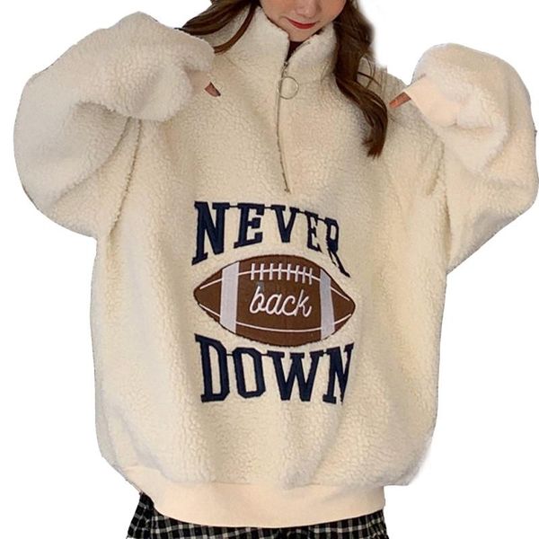 women's hoodies & sweatshirts winter 2021 plus velvet thick ladies sweatshirt letter printing zipper casual high neck lamb plush women, Black