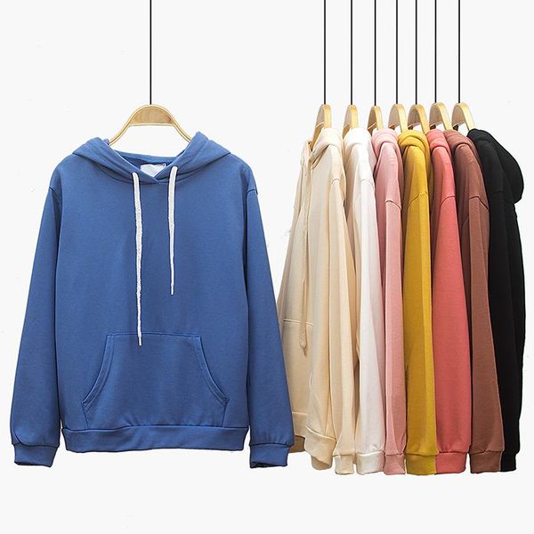 women's hoodies & sweatshirts women candy color hoodie autumn solid casual pocket drawstring hooded sweatshirt 2021 hoody ladies sudade, Black