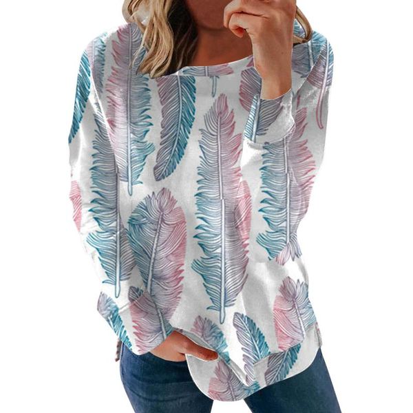 women's hoodies & sweatshirts women fashion sweatshirt long sleeve round neck female art print coats ladies casual feather pullover st, Black