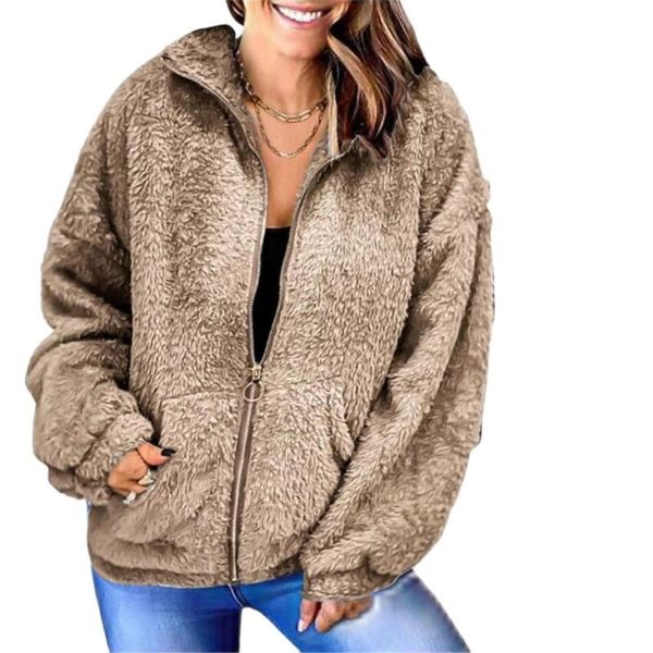 women's jackets european and american autumn winter double-sided cashmere casual loose zipper cardigan jacket s-5xl, Black;brown