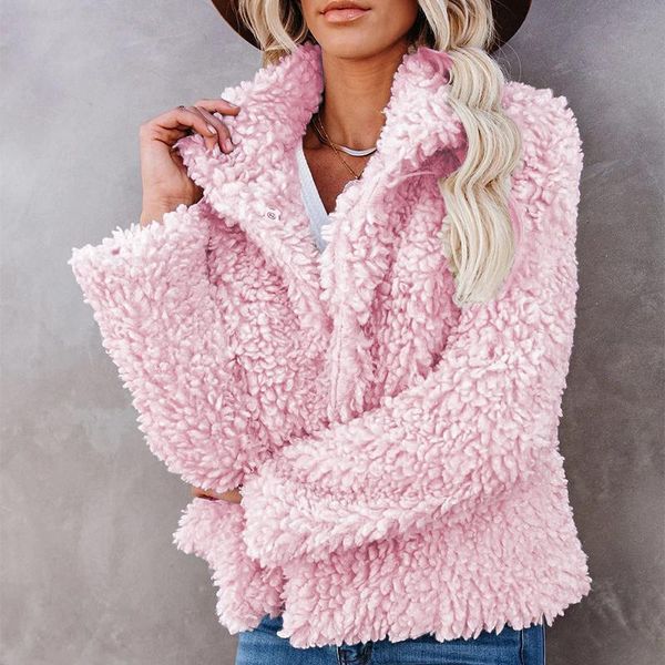 women's jackets fashion office solid plush lamb wool coats winter casual elegant loutwears women stand collar long sleeve cardigan, Black;brown