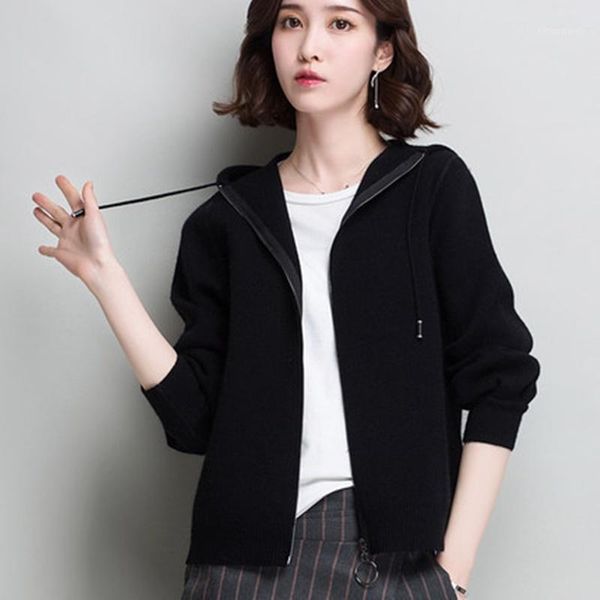 women's jackets female jacket fashion women zipper hoodie blouse loose sweatshirt coat 2021 autumn casual hooded knit outerwear coats, Black;brown