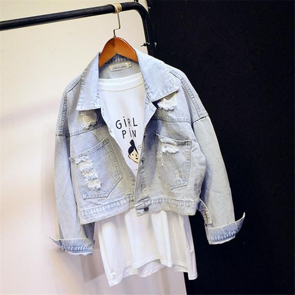 women's jackets korean short big pocket hole mujer chaqueta washed light blue women denim jacket autumn harajuku woman loose femme vest, Black;brown