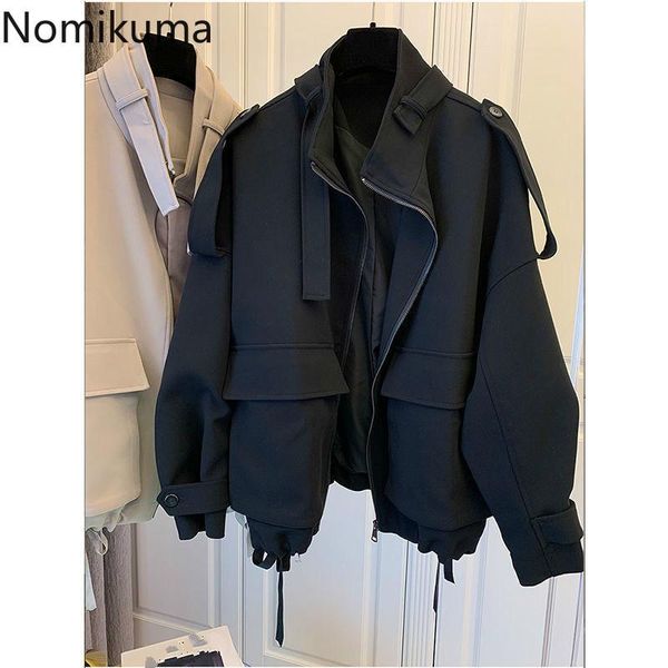 women's jackets nomikuma korean causal zipper stand neck women jacket 2021 spring long sleeve outwear fashion solid femme coat 6d907, Black;brown