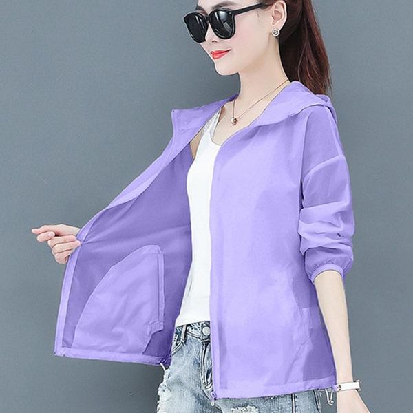 women's jackets summer 3xl plus size hooded thin sunscreen coat women loose zipper solid long sleeve sun shirts purple white gray, Black;brown