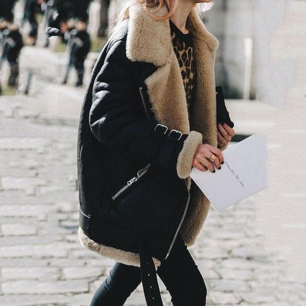 women's jackets winter women coat warm deerskin cashmere zipper turn down fashion female long sleeve streewear sly1, Black;brown