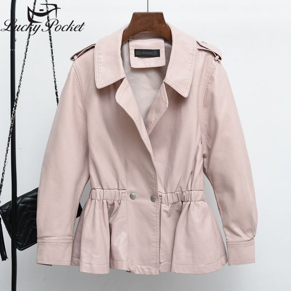 women's jackets women spring autumn pink lapel pu leather coat ladies fashion solid color epaulet button casual jacket slim outerwear z, Black;brown