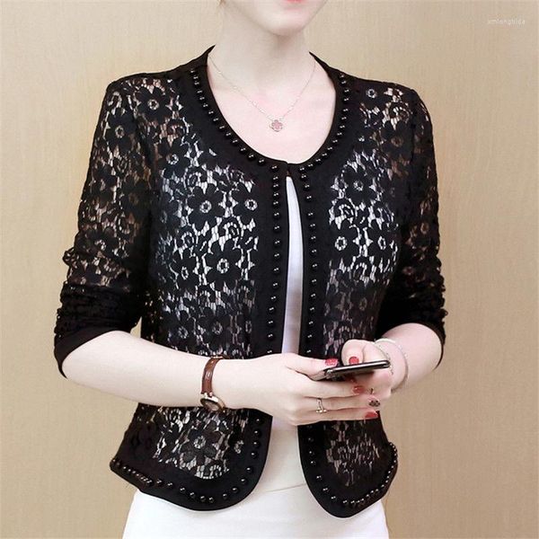 women's jackets women summer long sleeve beading shrug lace cape jacket elegant wraps beach shawl bolero plus size sun protection cloth, Black;brown