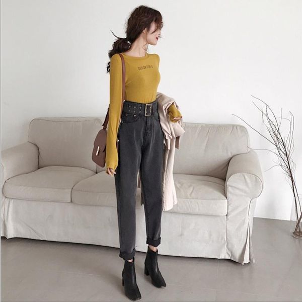 women's jeans 2021 autumn light denimpants women middle waist cotton ladies solid female ankle-length button trousers l249, Blue